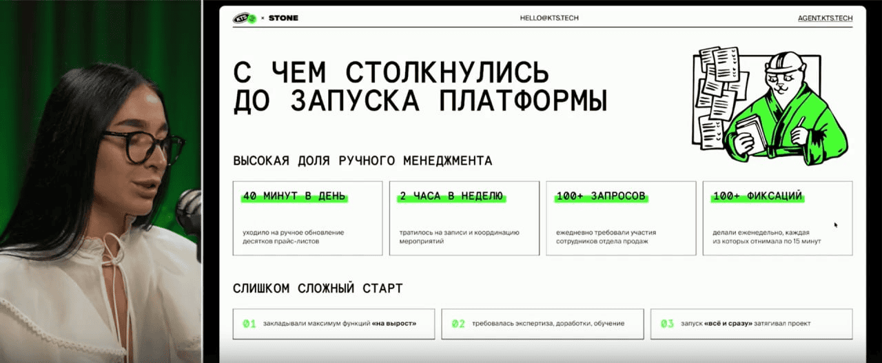 На вебинаре с KTS — разработчиком личного кабинета брокера для STONE — руководитель агентского направления Елена Николаева поделилась, с какими вызовами столкнулась, как аргументировала инвестиции и каких результатов удалось достичь. Делимся интервью с практическими выводами и цифрами, которые помогут защитить аналогичный проект в вашей компании.