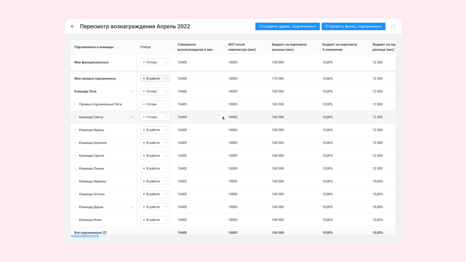 Конечно, для исключительных случаев в системе есть возможность заново открыть доступ нижестоящим руководителям, но продукт стремиться исключить бесконечное «перекидывание» таблицы.