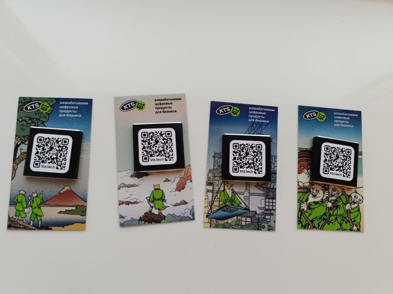 Есть раздатка для «галочки», а есть раздатка, которая продолжает разговор уже после выставки. Мы пошли по второму пути и сделали шоколадные визитки. Работает это так: вы берёте визитку, кладёте в карман, а вечером вспоминаете о KTS за чашкой кофе.