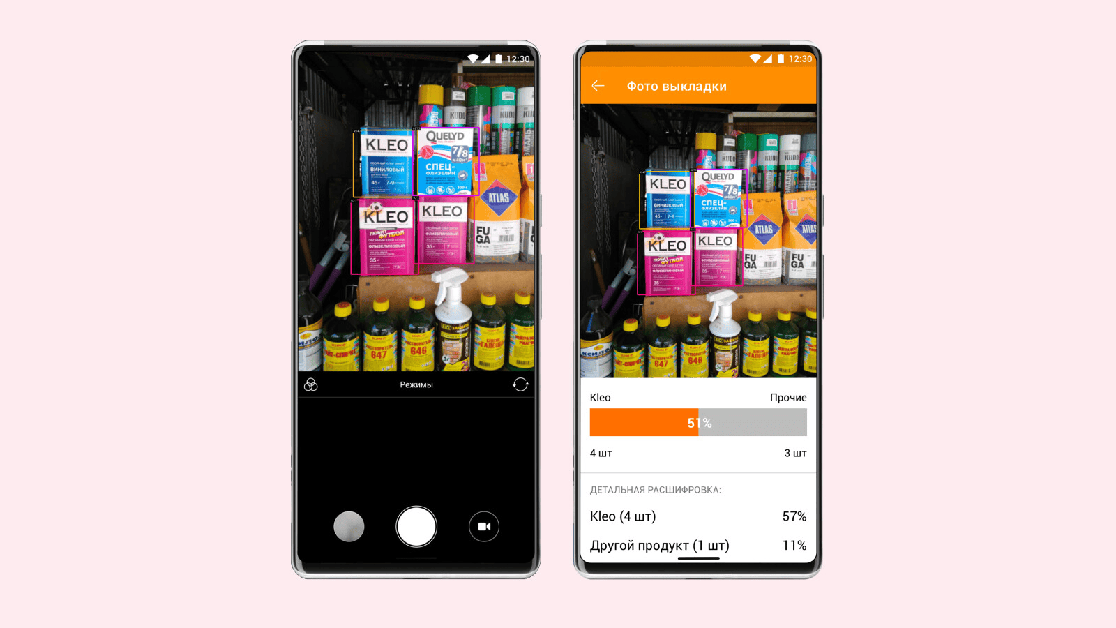 Для удобства работы торговых представителей мы добавили в приложение фэйсинг — автоматическое распознавание продукции на полках магазина по фотографии.