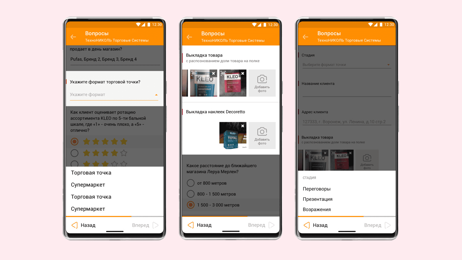 Мы начали работу с аналитики: посмотрели карту экранов в коробочном приложении, выделили все его минусы и выяснили, какие экраны необходимо добавить в новое приложение. MVP подготовили за три месяца. Ключевая его функция — фиксация визитов. Это посещение магазинов торговыми представителями.