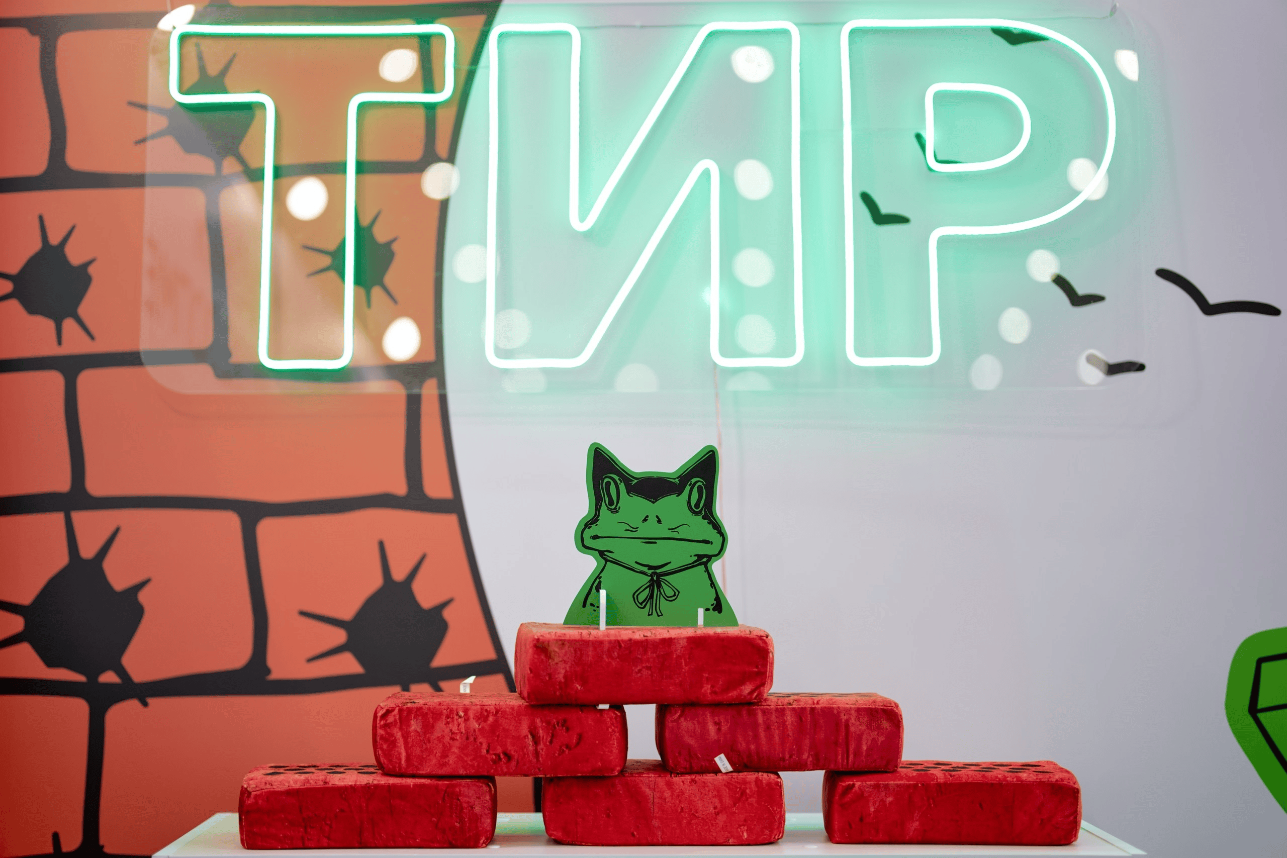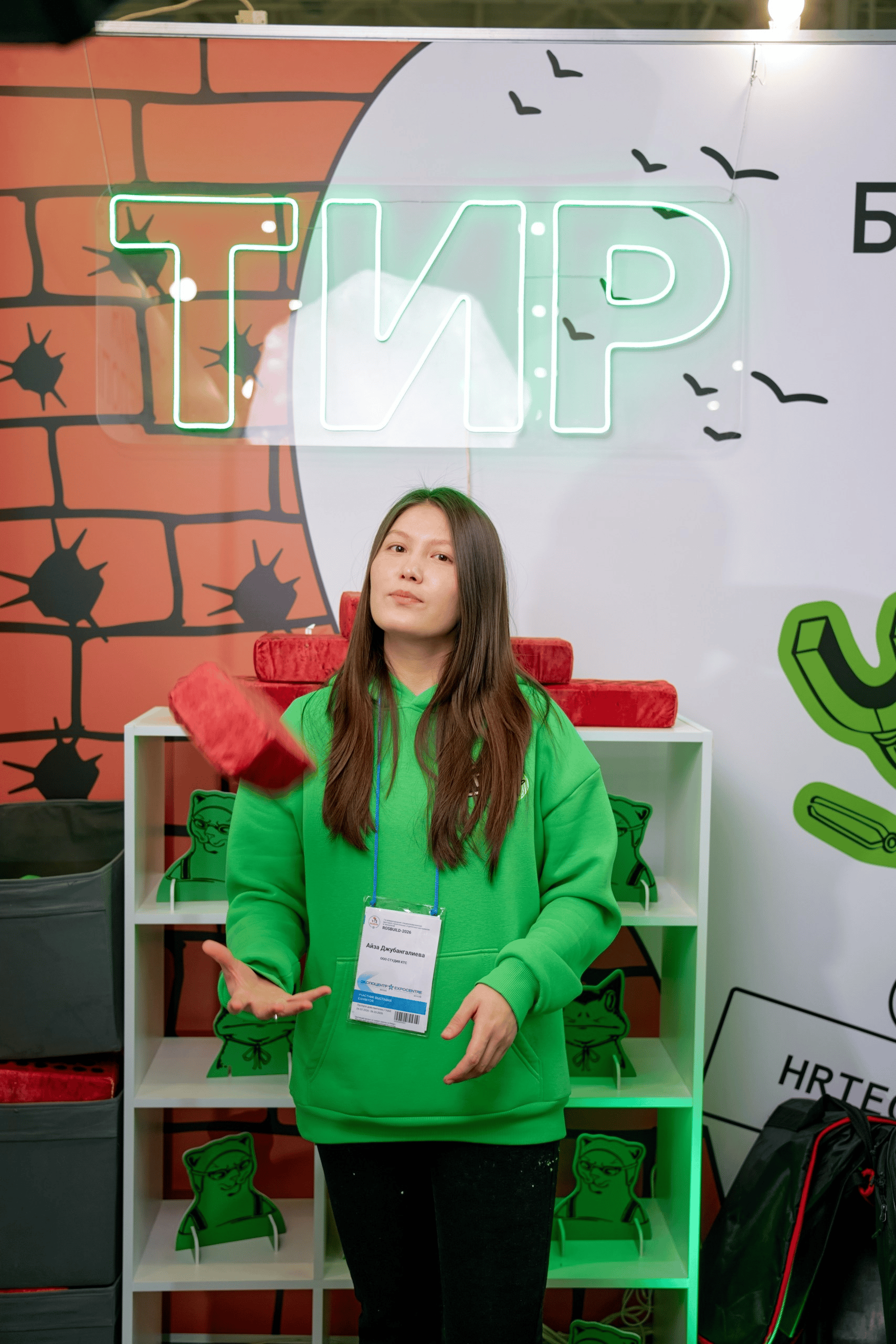 Гости бросали мягкие кирпичи и сбивали злых котов со стеллажа. Со стороны это выглядело как игра, но на практике работало как хороший icebreaker.